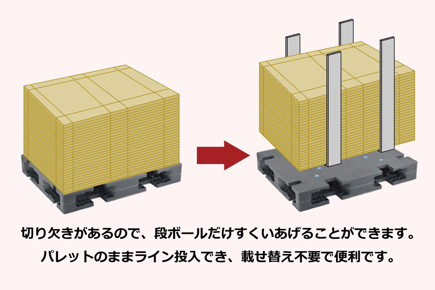 ボードを設置した場合、パレットが変形しにくくなります。