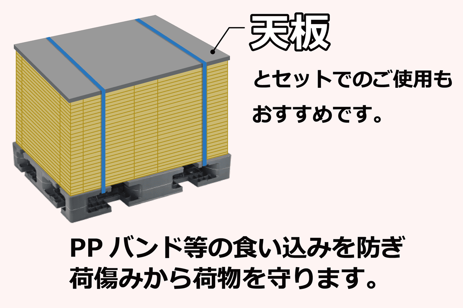 天板とセット使用で荷傷み防止に