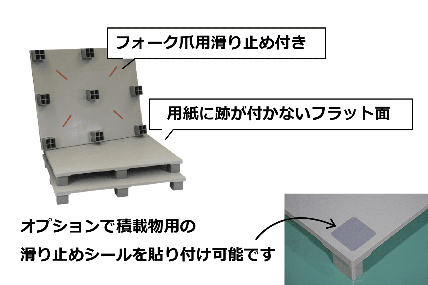 下面デッキが無く、パレットトラック作業に最適です。ただし、曲げ強度が劣るため、段積みには不向きです。