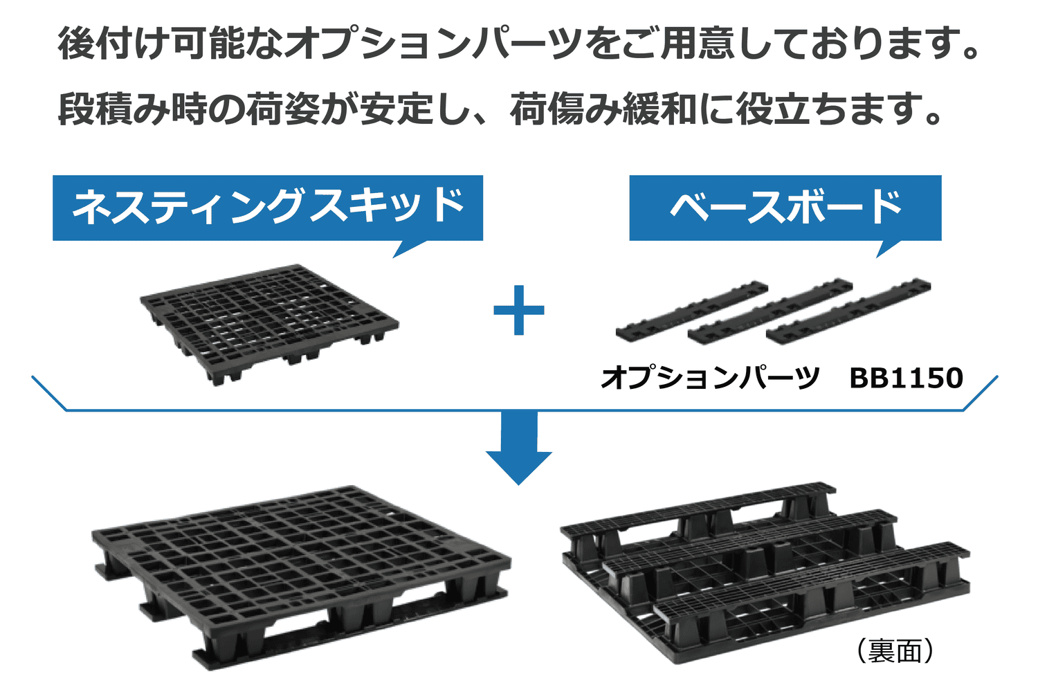 ボードを設置した場合、パレットが変形しにくくなります。